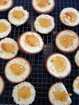 Now. Take a teaspoon of the marmalade and dollop it in the centre of each sponge.