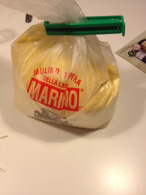 Waitrose sells a polenta that is £5 for a bag. But hey, I thought, it’s the main component of the meal, I’ll get it. Bound to be nicer. Organic. Nice bag, from Italy.