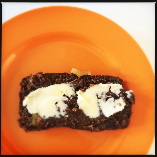 Take out and cool completely. Like all gingerbread, it tastes better after a few days of being wrapped in baking parchment/foil and is delicious sliced and spread with butter and served, in front of a fire, with a cup of tea.  It is full of lovely autumn flavours.