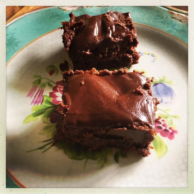 Anyway. I cut these into squares. They freeze brilliantly. They are tasty and nutritious and the sugar hit from the dates and bananas is balanced by the cashews. I eat them when I want something a bit chocolatey and quick and they have also served as an emergency lunch – with a green smoothie – when I’ve had no time and had to go straight to an interview. I know this makes me sound really virtuous and you know what? I am during the week. At the weekend I can eat whatever I damn well please.
