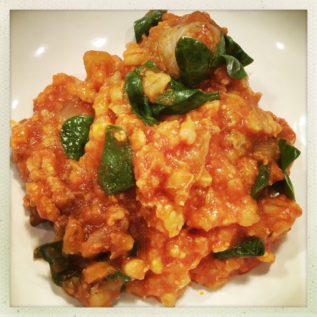 When I came home I rinsed out and spun dried some of the spinach and slung some of it into the slow cooker and stirred it through and voila. Mangiare pronto!