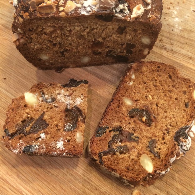 It’s fantastic when you need something bready, fast, and it is SO delicious. No yeast or proving is necessary. And come on it’s got nuts and prunes in! Good for you..